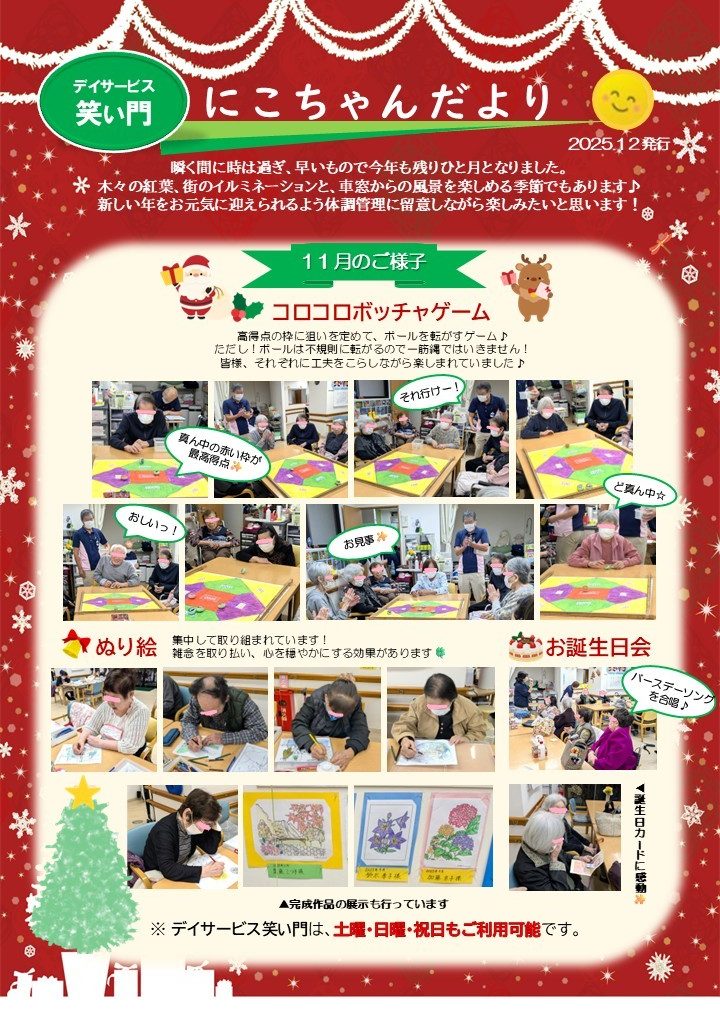 今月は『笑い門クリスマス会』を予定しております🎁✨ お楽しみに♬