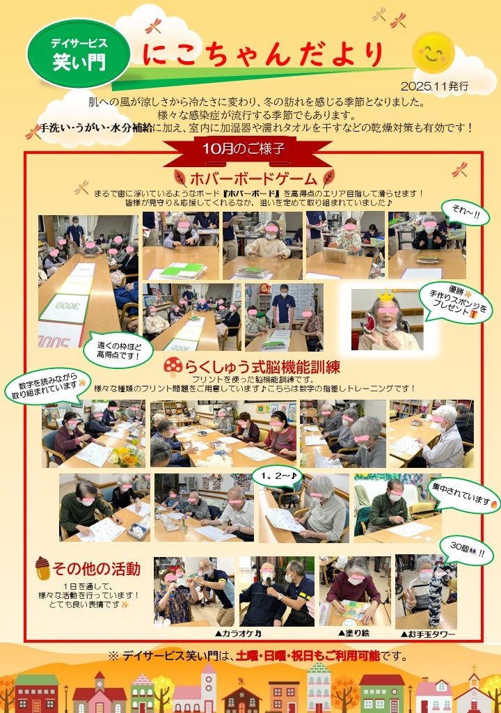 様々な感染症が流行る季節です。 笑い門ではひき続き感染症対策を行ってまいります。