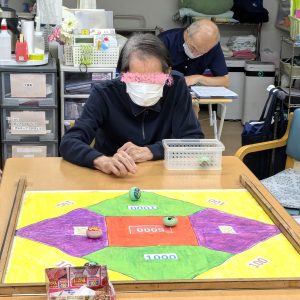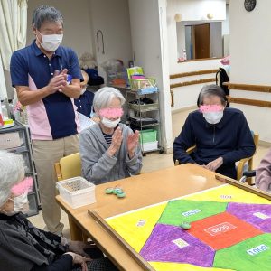 いつもとは異なるレクリエーション、オヤツを準備しておりますので、