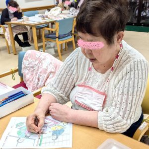 午前中のフリータイムは、ぬり絵に取り組まれている方が多くいらっしゃいます。